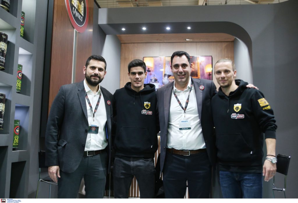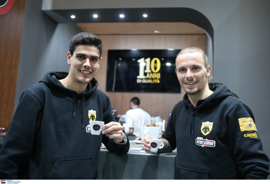 Το περίπτερο του CAFFÈ L’ANTICO επισκέφτηκαν οι παίκτες της ΑΕΚ Νίκλας Χουλτ και Σταύρος Βασιλαντωνόπουλος. Οι ποδοσφαιριστές της ΑΕΚ, συνοδευόμενοι από τον Εμπορικό Διευθυντή της ομάδας, κύριο Νίκο Καραούζα, ξεναγήθηκαν στο χώρο, δοκίμασαν το νέο blend BIO 100% Arabica, βιολογικής προέλευσης από Ονδούρα, Αιθιοπία και Περού και μοίρασαν αυτόγραφα.