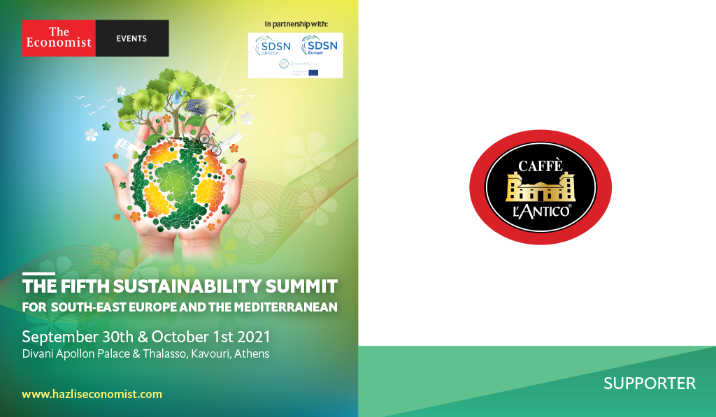 O CAFFÈ L’ANTICO συμμετείχε ως χορηγός στο “Fifth Sustainability Summit: For south-east Europe and the Mediterranean” που πραγματοποιήθηκε στις 30 Σεπτεμβρίου – 1η Οκτωβρίου 2021, στο Divani Apollon Palace & Thalasso, υπό την αιγίδα της Α.Ε. της Προέδρου της Δημοκρατίας Κατερίνας Σακελλαροπούλου και σε συνεργασία με το SDSN Greece, το SDSN Europe και το Climate-KIC.