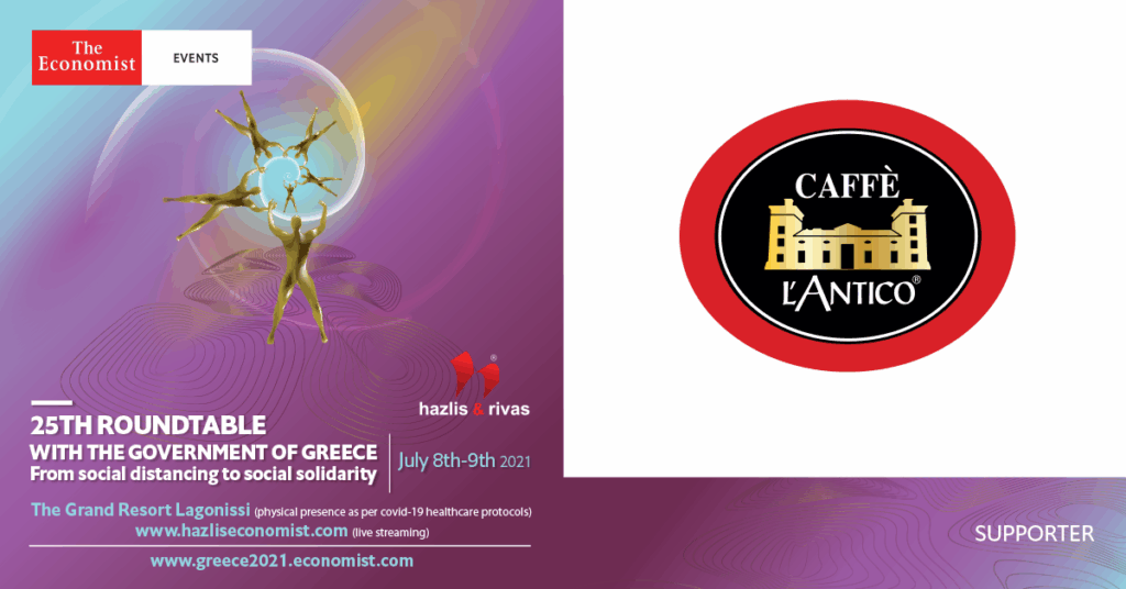 O CAFFÈ L’ANTICO συμμετείχε ως χορηγός στην 25η Συζήτηση Στρογγυλής Τραπέζης του Economist με την Ελληνική Κυβέρνηση με θέμα «Από την κοινωνική αποστασιοποίηση στην κοινωνική αλληλεγγύη» που πραγματοποιήθηκε στις 8 και 9 Ιουλίου 2021 στο Grand Resort Lagonissi.