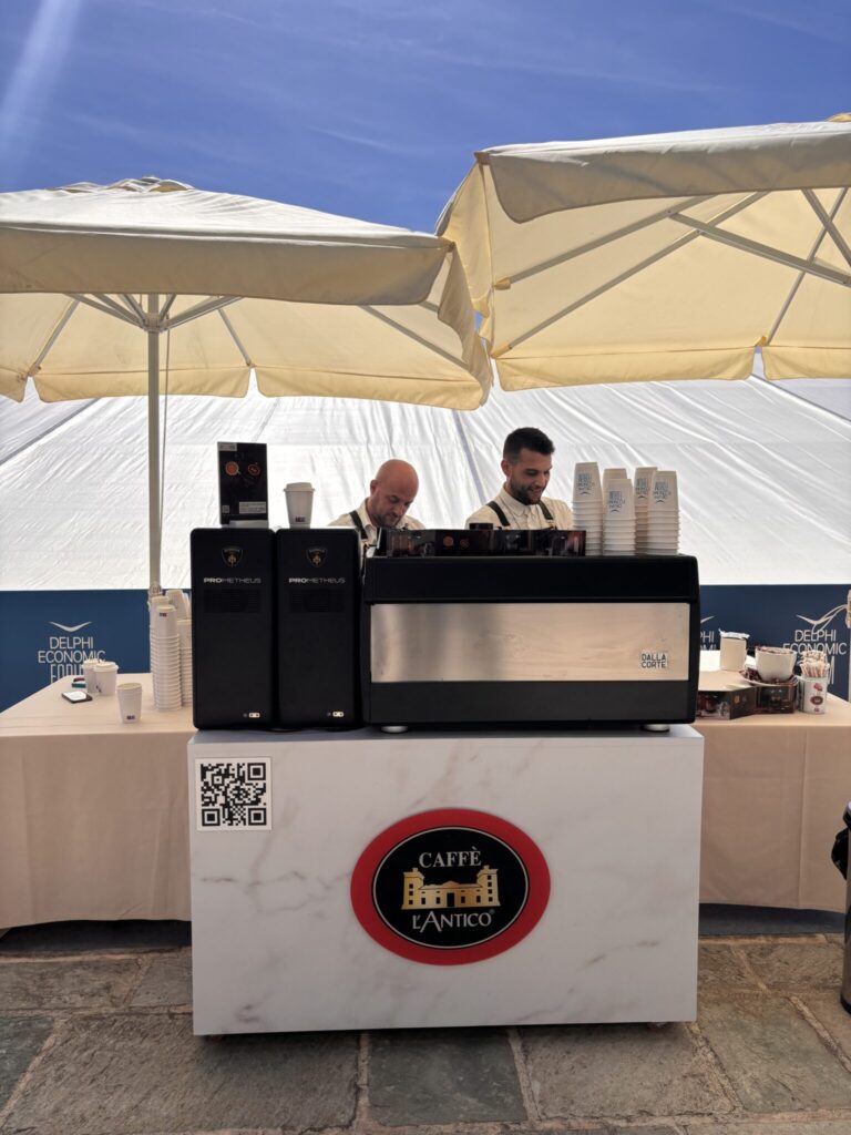 Ο Caffѐ L’Antico συμμετείχε στο Delphi Economic Forum ΙΧ, το οποίο πραγματοποιήθηκε στην εμβληματική πόλη των Δελφών από τις 10 έως τις 13 Απρίλιου 2023. Για ακόμη μία χρονιά, το συνέδριο συγκέντρωσε περισσότερους από 600 ομιλητές και 3.000 συνέδρους από την Ελλάδα και το εξωτερικό. Το θέμα του συνεδρίου ήταν “H Μεγάλη Μετάβαση” δίνοντας έμφαση στην γεωπολιτική και διεθνή ασφάλεια, την παγκόσμια οικονομία, την βιωσιμότητα και την κλιματική κρίση, την τεχνολογία και το μέλλον της ανάπτυξης, τους ανθρώπους, τις οργανώσεις και την κοινωνία. Για πρώτη φορά εντάχθηκε κατά τη διάρκεια του Forum η ενότητα “Μεγάλες Συζητήσεις” με θεματικές συζητήσεις μεγάλης διάρκειας που εκτείνονται σε πέντε πυλώνες: γεωργία, πρώτες ύλες, δημογραφική κρίση, ασύμμετρες απειλές – προστασία του πολίτη και ελληνική οικονομία.